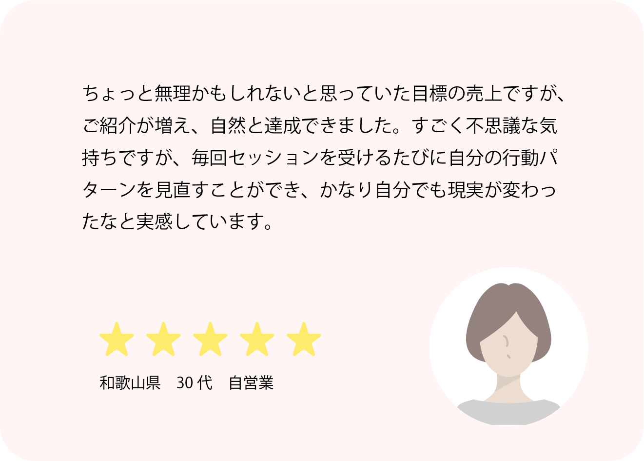 セッション終了後、次回の予約を当日に入れていただくと割引になります。継続的な変容プロセスに最適 です。
